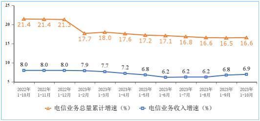 電信業(ye) 務收入和電信業(ye) 務總量累計增速 圖片來源:工信部網站