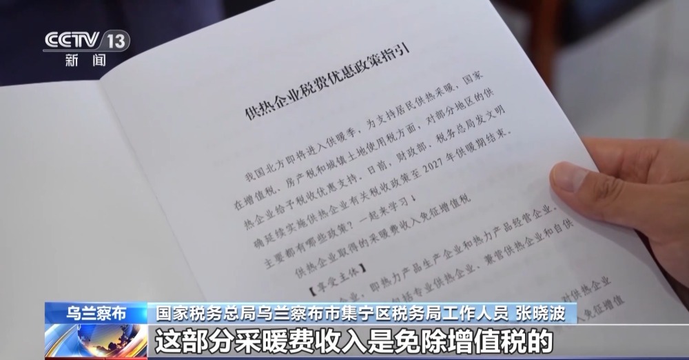 國家稅務總局烏(wu) 蘭(lan) 察布市集寧區稅務局工作人員 張曉波:向居民供熱取得的這部分采暖費收入是免除增值稅的,為(wei) 了支持企業(ye) 發展,也免除“房土”兩(liang) 稅。