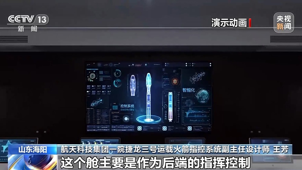航天科技集團一院捷龍三號運載火箭指控係統副主任設計師 王芳:這個(ge) 艙主要是作為(wei) 後端的指揮控製,還有一個(ge) 狀態的監測。