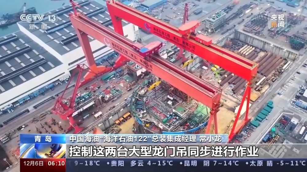 中國海油“海洋石油122”總裝集成經理 常小龍:我們(men) 是通過數字化係統,控製這兩(liang) 台大型龍門吊同步進行作業(ye) ,創新采用了插尖輔助定位技術,插尖都在每個(ge) 模塊下部,每個(ge) 都有十幾個(ge) 插尖,我們(men) 最終給它的定位精度控製在了4毫米以內(nei) ,我們(men) 這樣的方式也加快了整體(ti) 作業(ye) 效率,平均每兩(liang) 天吊一個(ge) 模塊,整體(ti) 作業(ye) 效率提高了50%以上。