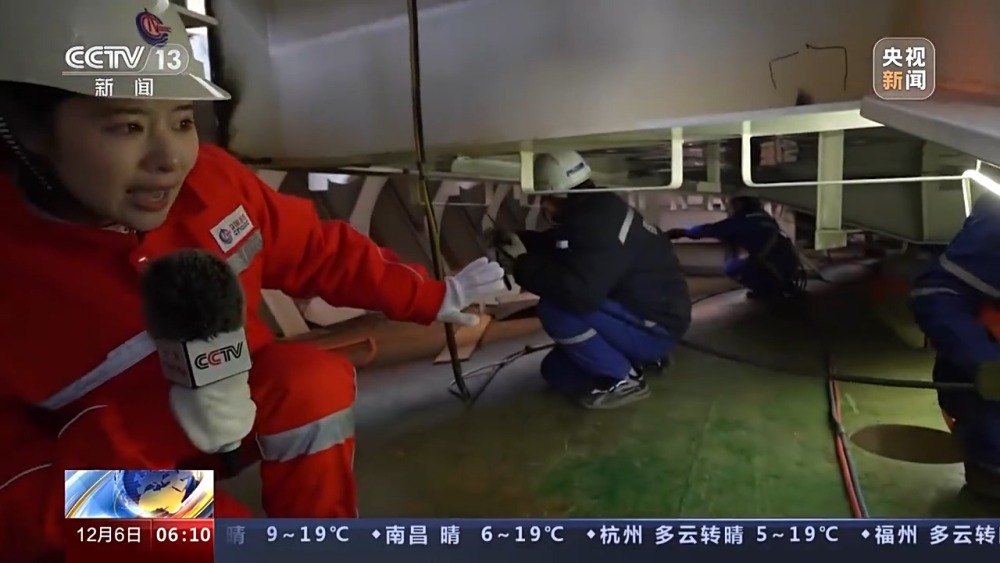 總台央視記者 張叢(cong) 婧:可以看到能源碗裏的空間非常狹窄,因為(wei) 這些模塊由幾十萬(wan) 個(ge) 零部件組成,集成度很高,我們(men) 現在進一個(ge) 施工現場裏看一下。工人師傅們(men) 正在這裏鋪設電纜,他們(men) 都是要蹲著,像這樣挪動才能夠完成這些操作。我發現其實像這樣的高難度施工,幾乎涉及所有的工種。