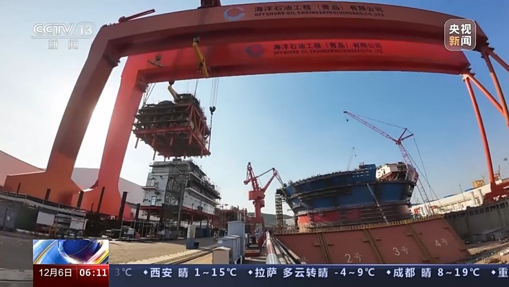 總台央視記者 張叢(cong) 婧:這裏是青島海洋工程高新裝備製造基地,隨著現場最後一個(ge) 模塊吊裝就位,意味著經過20個(ge) 月的施工,這個(ge) 集原油生產(chan) 、存儲(chu) 、外輸等功能於(yu) 一體(ti) 的新型“海上油氣加工廠”主體(ti) 結構建造完工,進入集成調試階段。