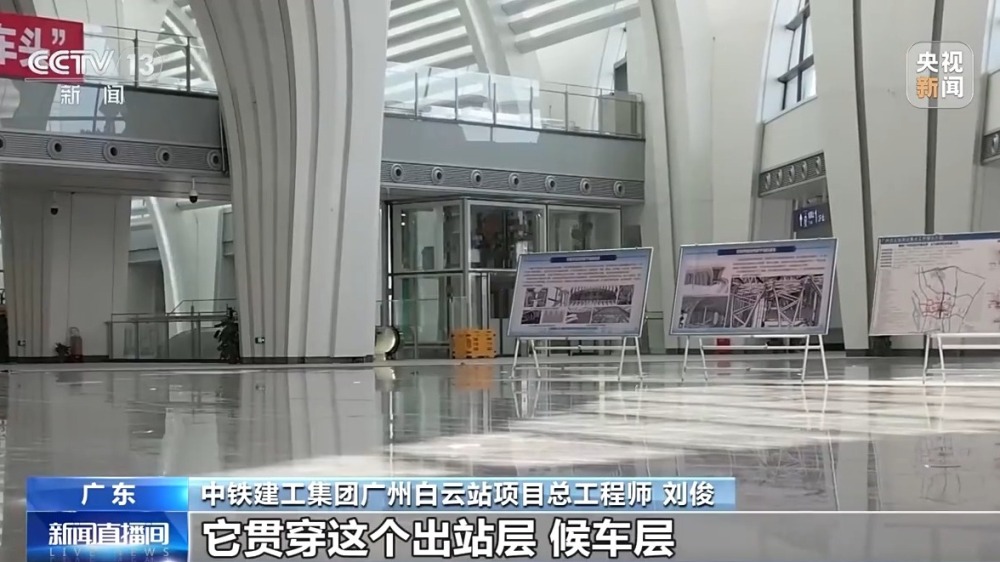 中鐵建工集團廣州白雲(yun) 站項目總工程師 劉俊:它貫穿這個(ge) 出站層、候車層,實現自然采光,可以節約用電。