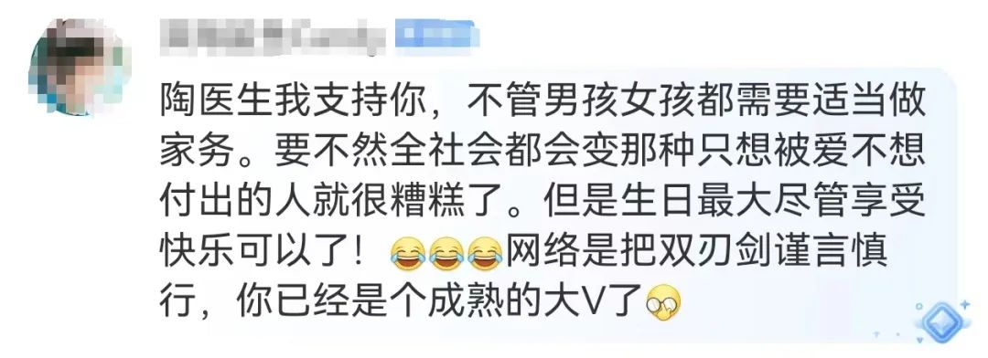 一部分網友認為(wei) 表達了對陶勇醫生的支持:“不管男孩女孩都需要適當做家務”“玉不琢不成器”。