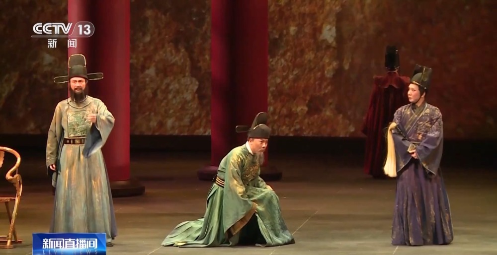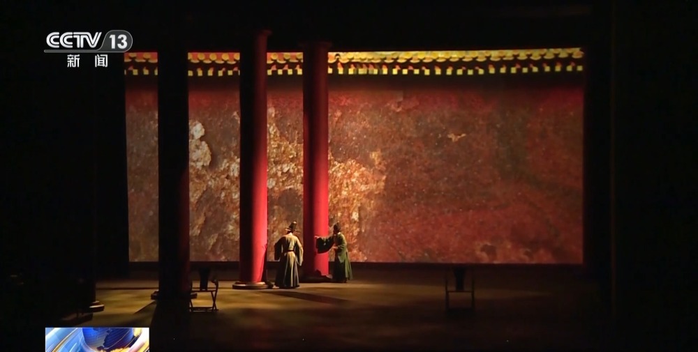 舞台上,靈感來自故宮大殿的八根紅色立柱構建起整個(ge) 表演空間,配合多媒體(ti) 的數字影像,營造出極具東(dong) 方審美意境的戲劇空間。兼具厚重與(yu) 靈動,讓曆史劇更具當代審美。