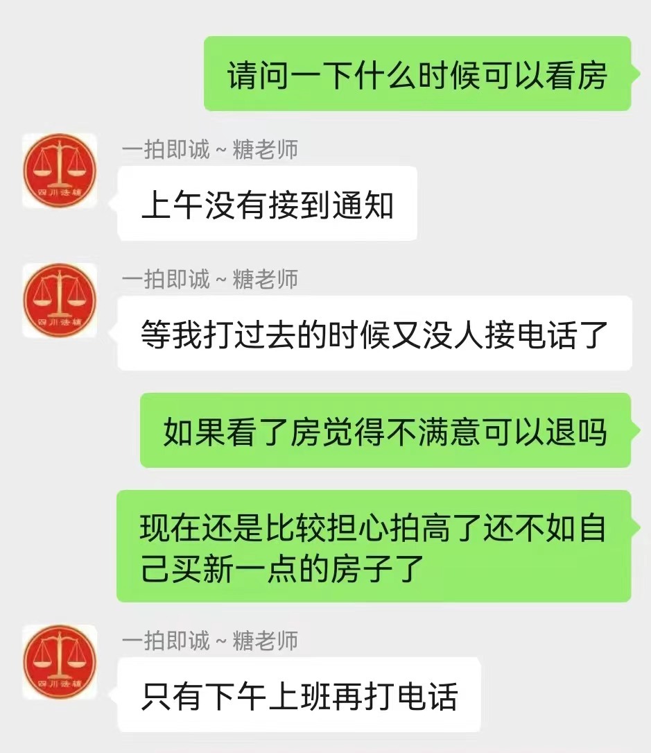 吳先生說:“他就請我去成都看一下(房子),不是要拍賣的那間房,是跟他同戶型同小區的其他房,他們(men) 就偽(wei) 裝是客戶,打電話給附近的鏈家,請鏈家的業(ye) 務找類似的房子,就帶我去看。看完之後回來就告訴我,反正隻要簽給他們(men) 公司,底價(jia) 拿到(房子)。等你交完費都弄好了,他就叫你去淘寶上麵報名,在阿裏(司法)拍賣拍,這不是已經擺明告訴我已經被騙了。”