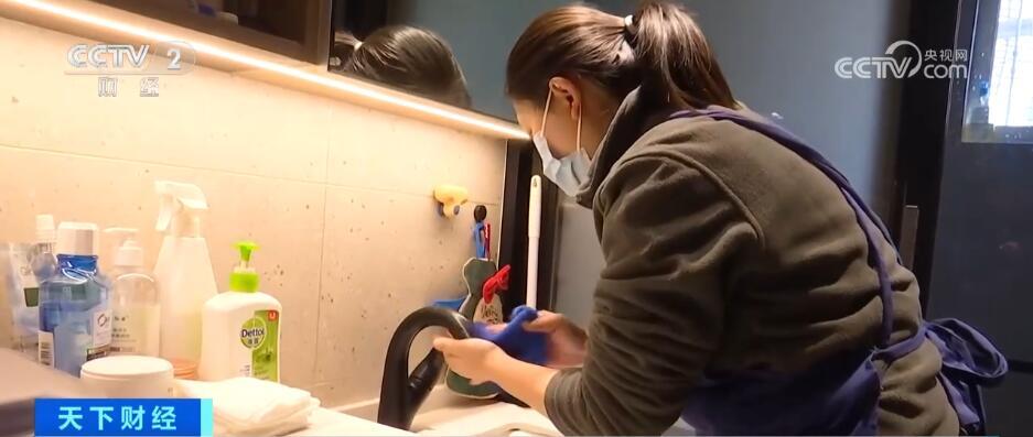 上午10點多,家政服務人員正在客戶家中忙碌。這是今天的第一單,服務項目4小時日常保潔。忙完這一單,她當天還有兩(liang) 單,預計最早也得晚上9點後才能收工。春節前的一個(ge) 多月,大部分家政服務人員工作量翻倍是常態。