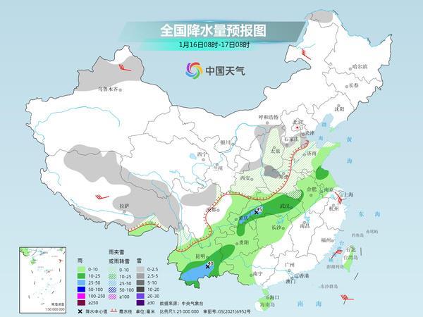 未來三天(1月16日至18日),北方降雪將有所減弱,南方降雨發展增強,西南地區東(dong) 部、江漢、江淮等地局部或現暴雨。同時,今明兩(liang) 天,中東(dong) 部各地氣溫將陸續回升,東(dong) 北、江南等地累計升溫幅度可達6至8℃,多地氣溫將較常年同期明顯偏暖。