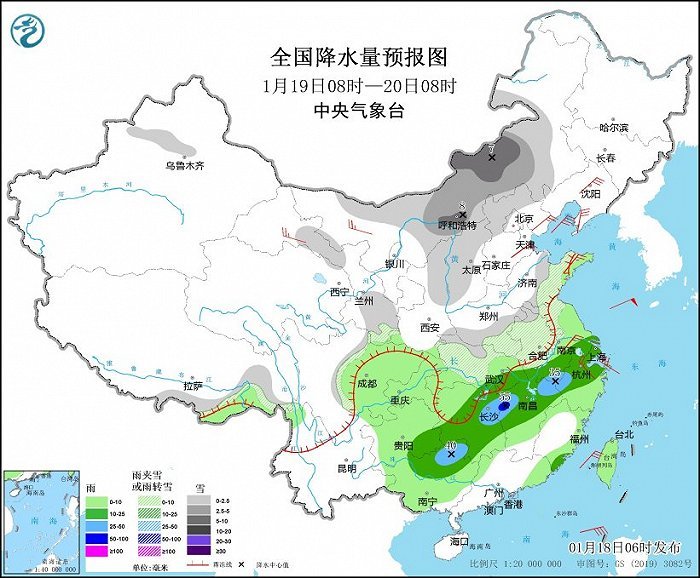 中央氣象台:今明兩天中東部雨雪持續 20日起寒潮將強勢入侵
