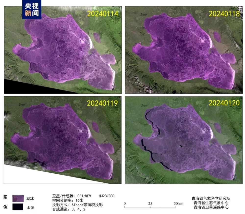記者從(cong) 青海省氣象局獲悉,衛星遙感監測顯示,1月14日起青海湖表麵完全凍結,依據《高原湖泊湖冰物候遙感監測技術標準》(DB63/T1929-2021),湖泊表麵連續5日完全被冰覆蓋的首日為(wei) 完全凍結日,因此判定1月14日為(wei) 青海湖完全凍結日。