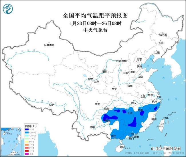 中央氣象台1月23日06時繼續發布低溫藍色預警:預計,1月23日至25日,貴州、湖南、江西、浙江中南部、福建西部、廣東(dong) 、廣西中東(dong) 部等地最低氣溫或平均氣溫較曆史同期偏低5℃以上,其中,貴州中東(dong) 部、湖南西北部、江西中南部、浙江南部、廣東(dong) 西北部等地的部分地區偏低7℃以上,最低氣溫0℃線將位於(yu) 廣西北部、廣東(dong) 北部一帶 。