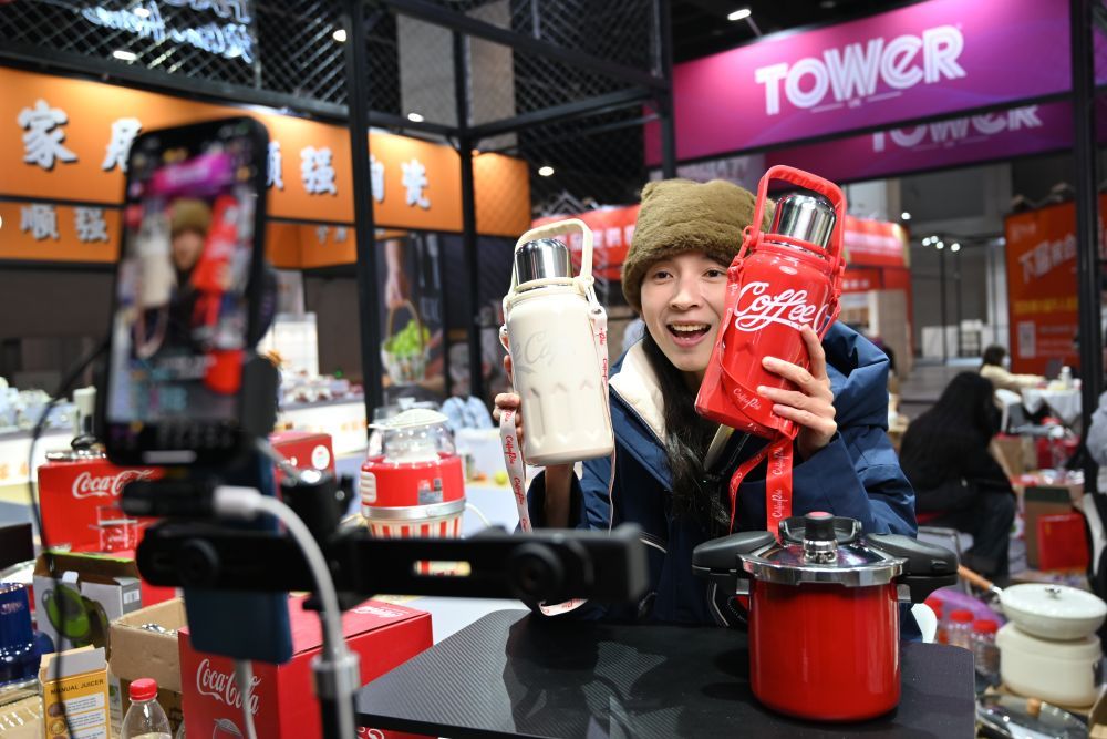 2023年12月21日,浙江省永康市一家保溫杯企業(ye) 電商部門的工作人員通過直播推介保溫杯產(chan) 品。新華社記者 韓傳(chuan) 號 攝