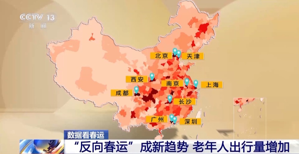 數據顯示,今年“反向春運”趨勢明顯,更多的老年人選擇前往子女的工作地團聚,他們(men) 的來源地主要集中在四川、河北、湖北、湖南等省份,而主要目的地則是北京、西安、天津、成都、廣州、上海、南京、深圳、長沙等一、二線中心城市。