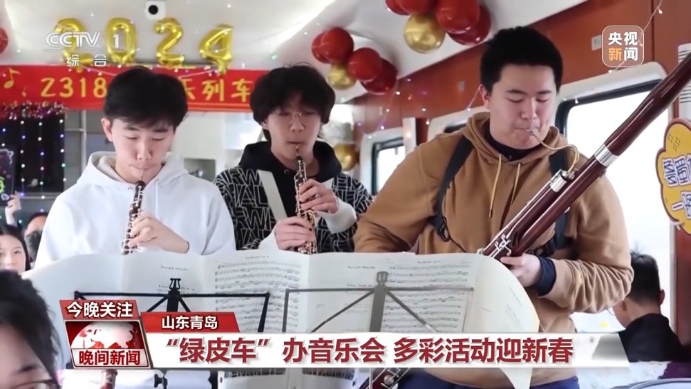 隨著春節臨(lin) 近,在外務工的遊子們(men) 紛紛踏上了回家的旅途。為(wei) 了給這些辛苦一年的務工人員帶去歡樂(le) ,在青島北開往成都西Z318次列車上,悅耳的歡快旋律響起。列車工作人員邀請三位學生旅客,為(wei) 大家演奏了悠揚歡快的樂(le) 曲。