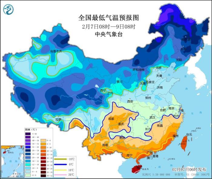 中央氣象台2月7日06時繼續發布低溫藍色預警