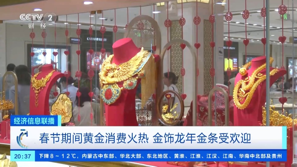 中國黃金協會(hui) 18日表示,春節期間,盡管黃金價(jia) 格居高位,但我國黃金消費仍然火爆,黃金首飾和龍年金條成為(wei) 最具人氣的產(chan) 品。