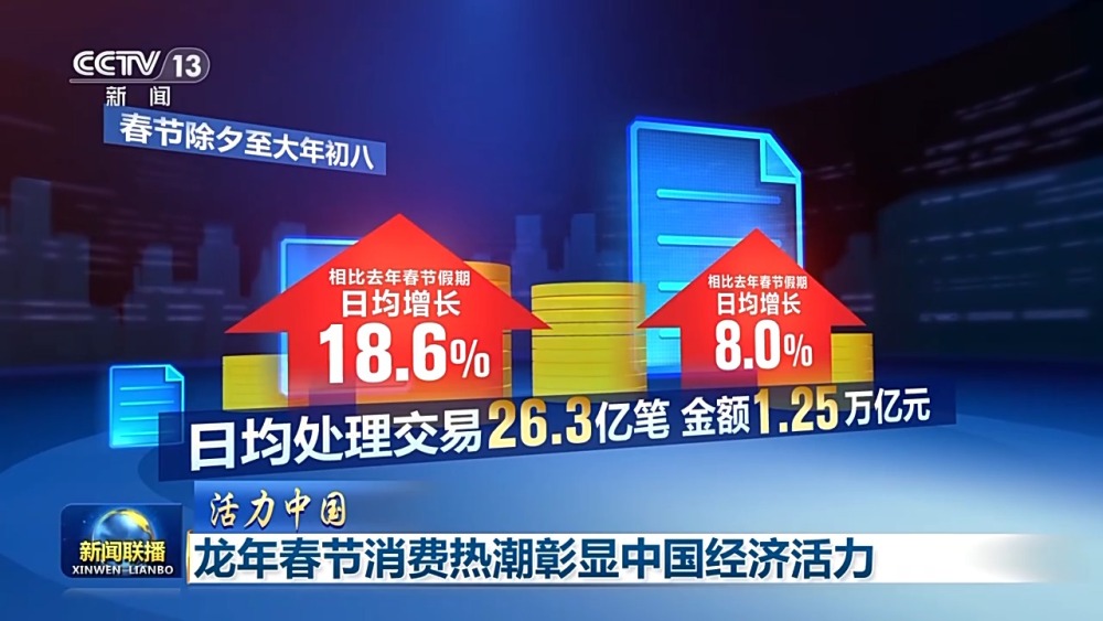 龍年春節,我國消費市場火熱。城鄉(xiang) 市場供給豐(feng) 富,祖國南北人氣旺盛,新春湧動的消費熱潮,彰顯出中國經濟的蓬勃活力。