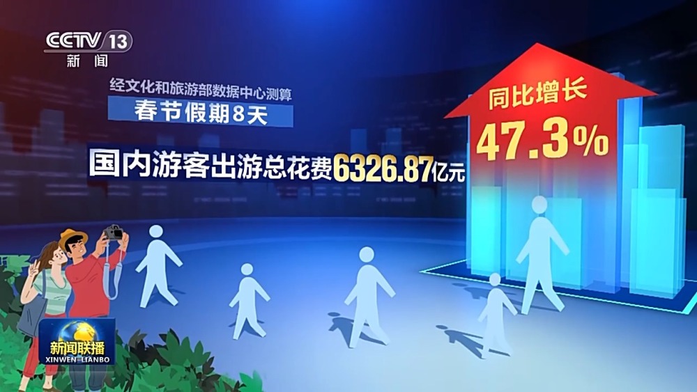 今年這個(ge) 春節,人們(men) 走得更遠,遊玩時間更長。出行平台分析訂單數據後發現,假期裏,超過一半的人選擇跨省出遊,其中三成以上的人選擇兩(liang) 個(ge) 及以上目的地,中國遊客出境目的地覆蓋全球1700多個(ge) 城市,個(ge) 性化出遊、定製化消費成為(wei) 新趨勢。在陝西景區裏看一場沉浸式演出,遊客既是觀眾(zhong) ,又是演員,全新消費體(ti) 驗帶來上億(yi) 元演出收入;四川把火鍋文化和特色觀光結合在一起,帶動特色餐飲消費熱度不斷。節日裏,滕王閣景區北園向公眾(zhong) 開放,通過濱江水道,遊客可以直接穿行老城區的商鋪。經文化和旅遊部數據中心測算,春節假期八天,全國國內(nei) 旅遊出遊4.74億(yi) 人次,同比增長34.3%,國內(nei) 遊客出遊總花費6326.87億(yi) 元,同比增長47.3%。
