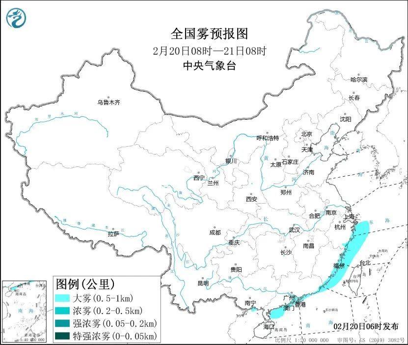 預計,20日白天至夜間,東(dong) 海西部海域、浙閩沿岸海域、台灣海峽、廣東(dong) 沿岸海域、廣西沿岸海域將有大霧,能見度不足1公裏。此外,20日早晨至上午,浙江東(dong) 南部、廣東(dong) 東(dong) 南部等地將有大霧天氣,局地有能見度不足500米的濃霧。