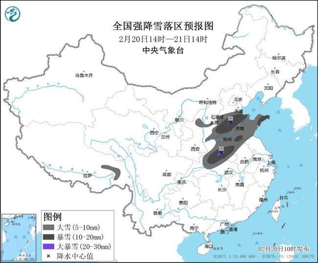 中央氣象台2月20日10時發布暴雪黃色預警:
