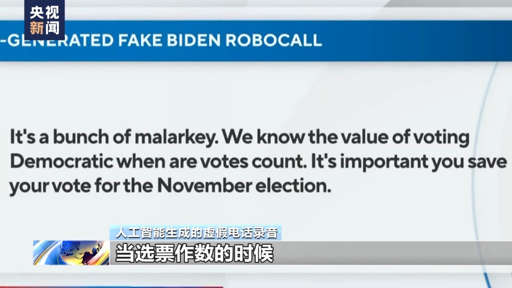 人工智能生成的虛假電話錄音:真是一派胡言,當選票作數的時候,我們(men) 就能知道民主投票的價(jia) 值了。你要把選票留到11月再投。