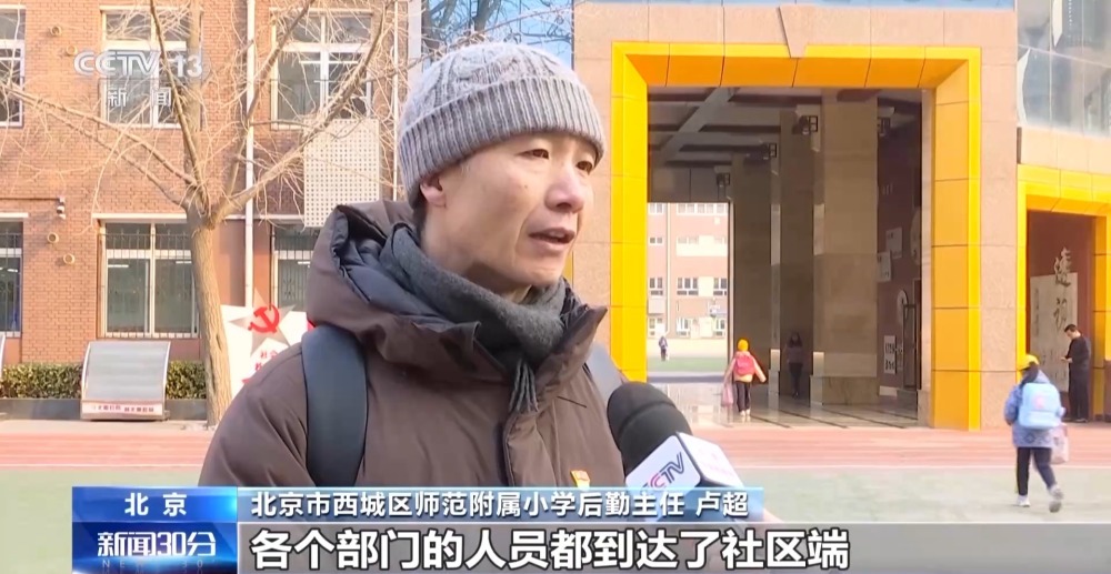 北京市西城區師範附屬小學後勤主任 盧超:今天是(通學車運營)第一天,各個(ge) 部門人員都到達了社區端,現場疏導交通,和我們(men) 預想的基本一致。