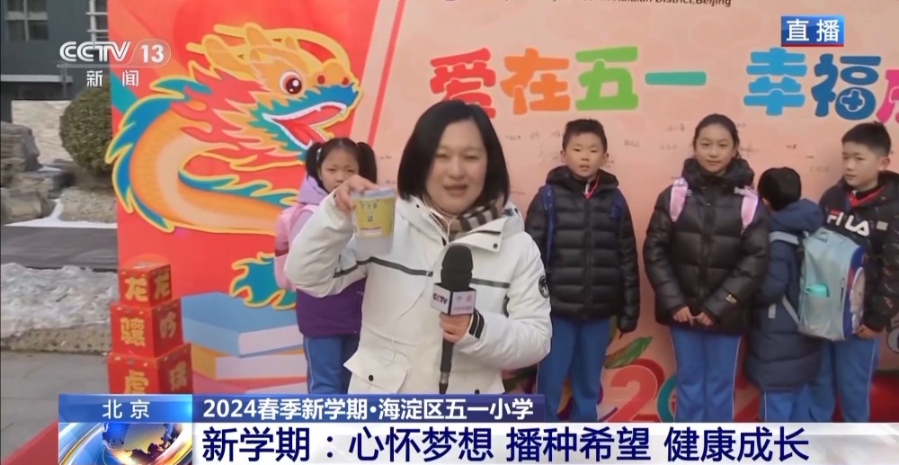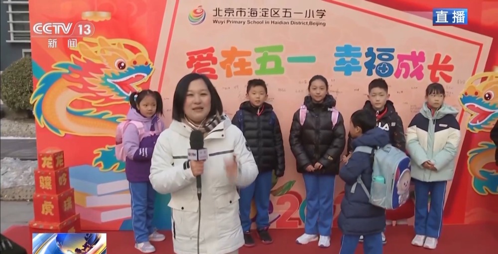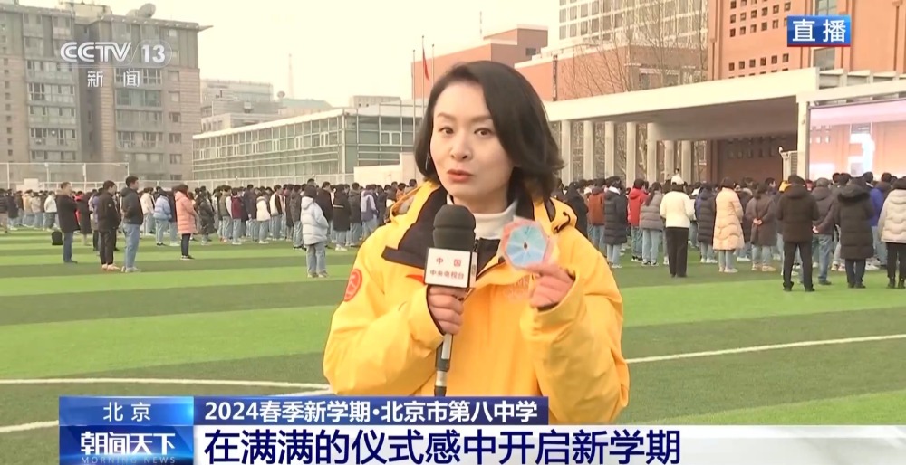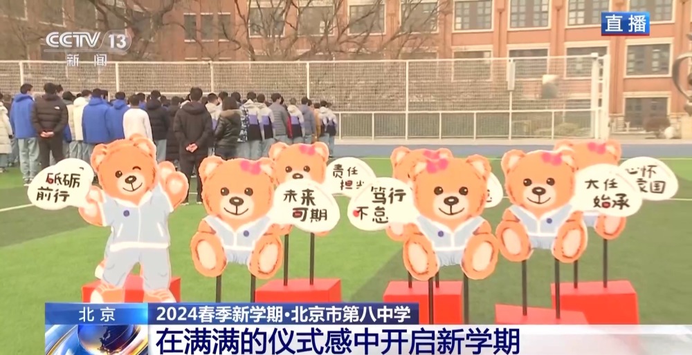 總台央視記者 李晶晶:北京市第八中學高中部,近2300名高中生齊聚國旗下,舉(ju) 行新學期的第一次升旗儀(yi) 式,在滿滿的儀(yi) 式感中開啟新的學習(xi) 生活。今年是龍年,有句祝福語叫“龍行龘龘,前程朤朤”,現在正在進行的國旗下的演講,題目就是《龘龘朤朤間是向上的力量》,老師祝福學生們(men) 像龍一樣騰飛而上,同時也是鼓勵他們(men) 要有夢想,為(wei) 實現夢想不斷努力向上。