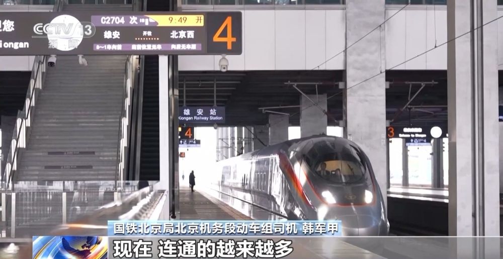 讓李建河感覺到方便的是2020年底通車的京雄城際鐵路,經過三年多的運營,每天有36趟列車往返於(yu) 北京西和雄安站之間。也是在京雄城際鐵路開通的那一天,韓軍(jun) 甲走進了京雄城際列車的駕駛室。