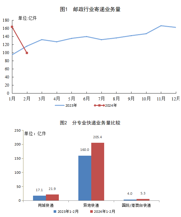 2.受春節假期因素影響,今年2月份郵政行業(ye) 同比增速下降。