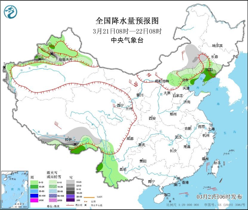 21-23日,新疆北部有小到中雨或雨夾雪,高海拔地區有中到大雪,局地暴雪或大暴雪;內(nei) 蒙古東(dong) 部、華北北部、東(dong) 北地區大部有小雨或雨夾雪,內(nei) 蒙古東(dong) 部、黑龍江東(dong) 部和西北部、吉林東(dong) 部有小到中雪,局地大到暴雪。