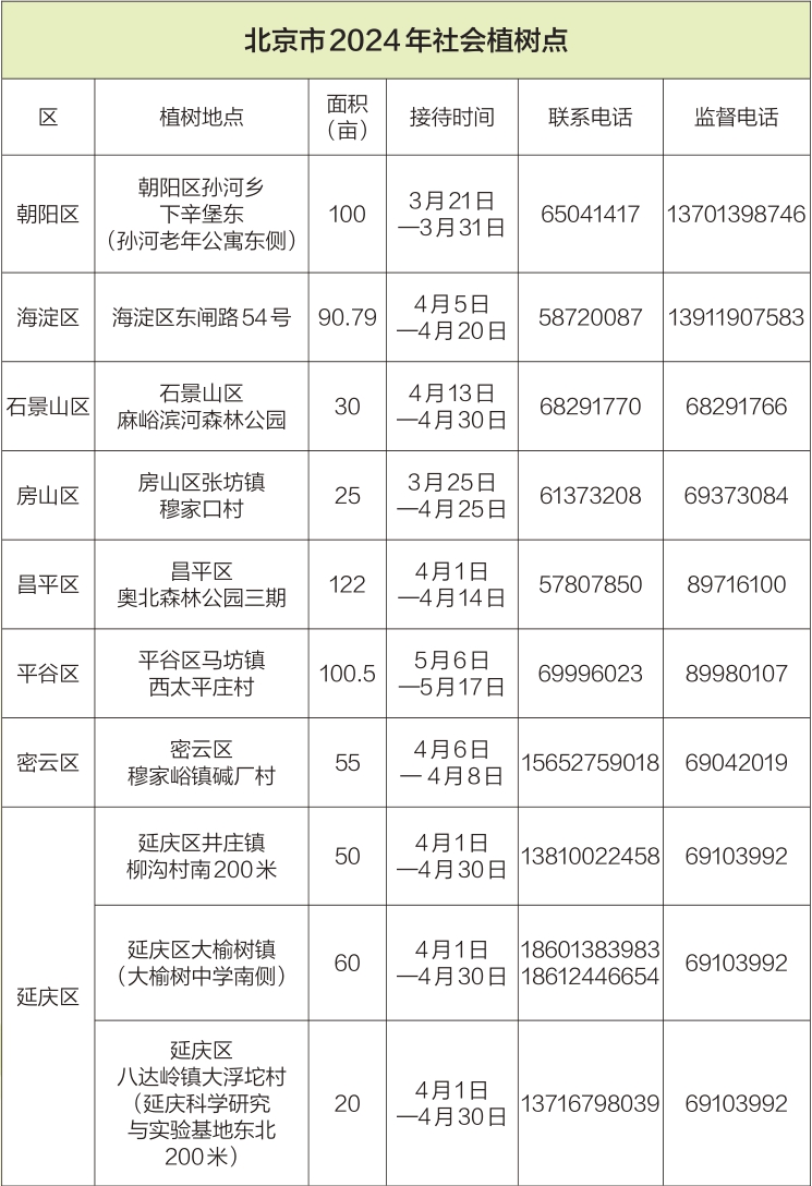 為(wei) 更好地給首都市民履行植樹義(yi) 務提供服務,讓更多的力量參與(yu) 到北京建設花園城市的事業(ye) 當中,2024年全市設立春季植樹盡責接待點10處,可供植樹麵積653畝(mu) ;設立社會(hui) 撫育勞動接待點20處,可撫育麵積3830畝(mu) ;84個(ge) “互聯網+全民義(yi) 務植樹”基地將提供多種盡責形式的全年化接待服務。首都市民可以通過“首都全民義(yi) 務植樹”微信公眾(zhong) 號查詢感興(xing) 趣的義(yi) 務植樹盡責活動,進行預約、簽到,在線領取首都全民義(yi) 務植樹盡責證書(shu) 。