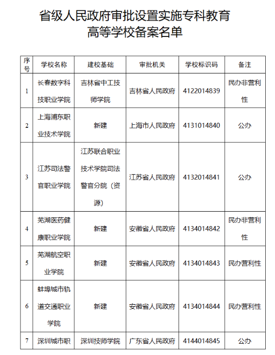 央廣網北京3月25日消息(記者馮(feng) 儀(yi) ) 近日,教育部根據《中華人民共和國高等教育法》《普通高等學校設置暫行條例》等有關(guan) 法律法規和政策文件的規定,將省級人民政府審批新設的專(zhuan) 科層次高等學校備案名單予以公布。