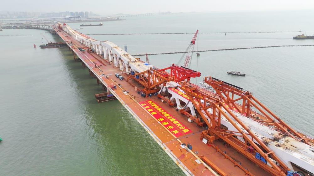 澳氹第四條跨海大橋連接澳門新城填海A區、填海E區以及港珠澳大橋人工島口岸區,是構建澳門城市交通體(ti) 係的關(guan) 鍵節點。該大橋於(yu) 3月12日順利實現全橋合龍,由主體(ti) 結構工程全麵邁入橋梁附屬結構工程。(總台記者 劉冰清)