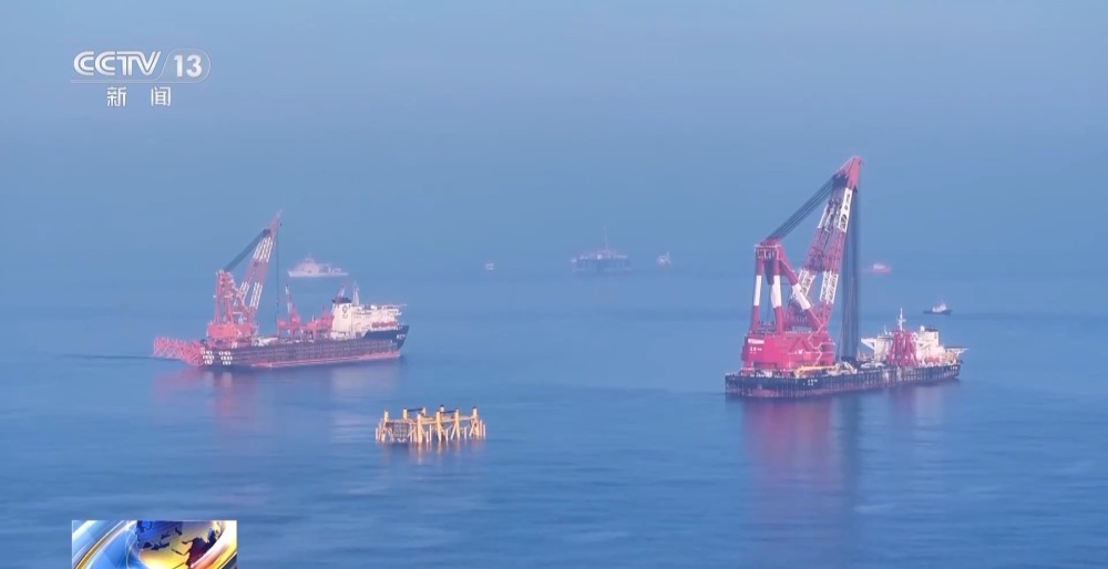 總台央視記者 古峻嶺:在“海基二號”海上安裝作業(ye) 現場,經過16個(ge) 小時的連續施工作業(ye) ,“海基二號”已經由昨天滑移下水時的橫向漂浮狀態,變為(wei) 直立狀態,它高達338米的龐大身軀,已經穩穩站立在了324米深的海床之上,僅(jin) 有10餘(yu) 米的部分露出水麵,接下來工作人員將以它為(wei) 基礎,建設安裝一座萬(wan) 噸級海上鑽井平台。未來它將在台風和惡劣海況的輪番考驗下,在這裏穩穩矗立30年,源源不斷地將深海油氣輸送到千家萬(wan) 戶,為(wei) 保障國家能源安全提供堅強支撐。
