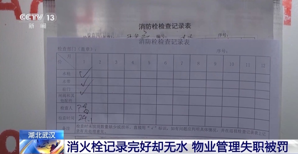 消火栓記錄完好卻無水 物業(ye) 管理失職被罰