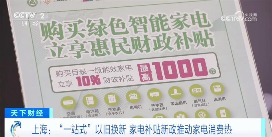 央視網消息:日前,國務院印發《推動大規模設備更新和消費品以舊換新行動方案》,明確實施消費品以舊換新行動。上海市從(cong) 3月30日起實施新一輪綠色智能家電消費補貼政策,對16大類一級能效家電產(chan) 品進行補貼,各大商超賣場也推出“一站式”以舊換新、延伸局部改造等補貼及服務。