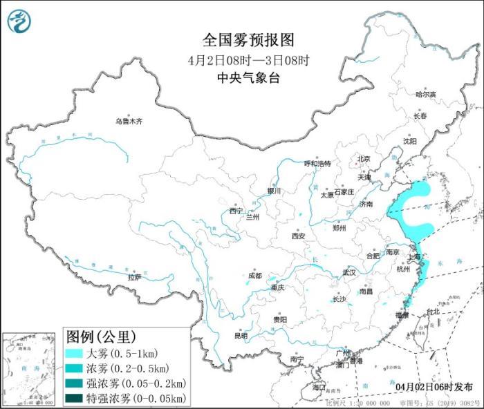 預計,4月2日白天,黃海中西部海域、山東(dong) 半島東(dong) 部和南部沿岸海域、浙江沿岸海域將有能見度不足1公裏的大霧。此外,4月2日傍晚至3日早晨,黃海西南部海域、江蘇中部和南部沿岸海域、長江口附近海域、杭州灣附近海域、浙江中北部沿岸海域將有能見度不足1公裏的大霧。中央氣象台4月2日06時繼續發布大霧黃色預警。