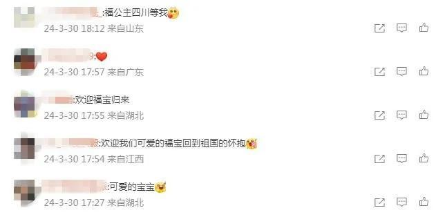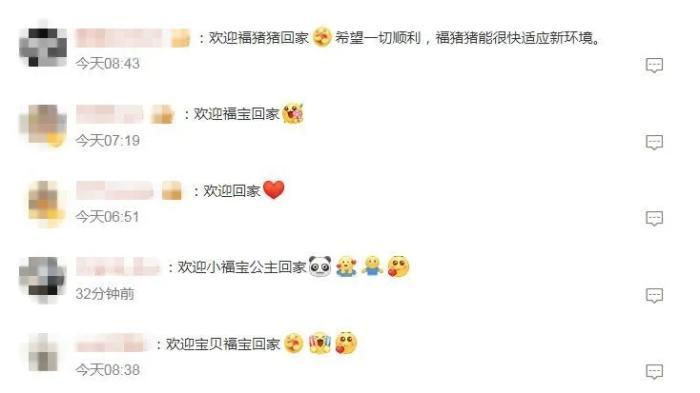 有網友寫(xie) 道,祝願“福寶”一切順利,“能很快適應新環境”。還有網友表示,“福寶回國後一定也要福氣滿滿,永遠幸福哦!”