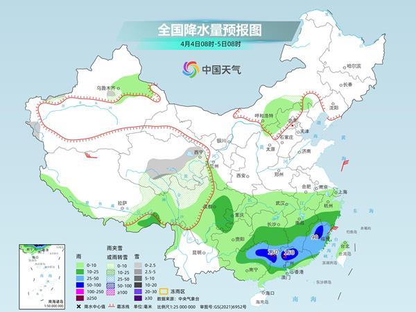 具體(ti) 來看,中央氣象台預計,今天,內(nei) 蒙古東(dong) 北部、黑龍江中東(dong) 部和西南部、新疆北疆北部和南疆西部山區、西藏北部、青海南部和西部、川西高原北部等地部分地區有小雪或雨夾雪。西藏東(dong) 南部、江南大部、西南地區東(dong) 部、華南北部等地部分地區有中到大雨,其中,江西南部、福建西北部、廣西東(dong) 北部、廣東(dong) 西北部等地部分地區有暴雨或大暴雨(100~120毫米)。