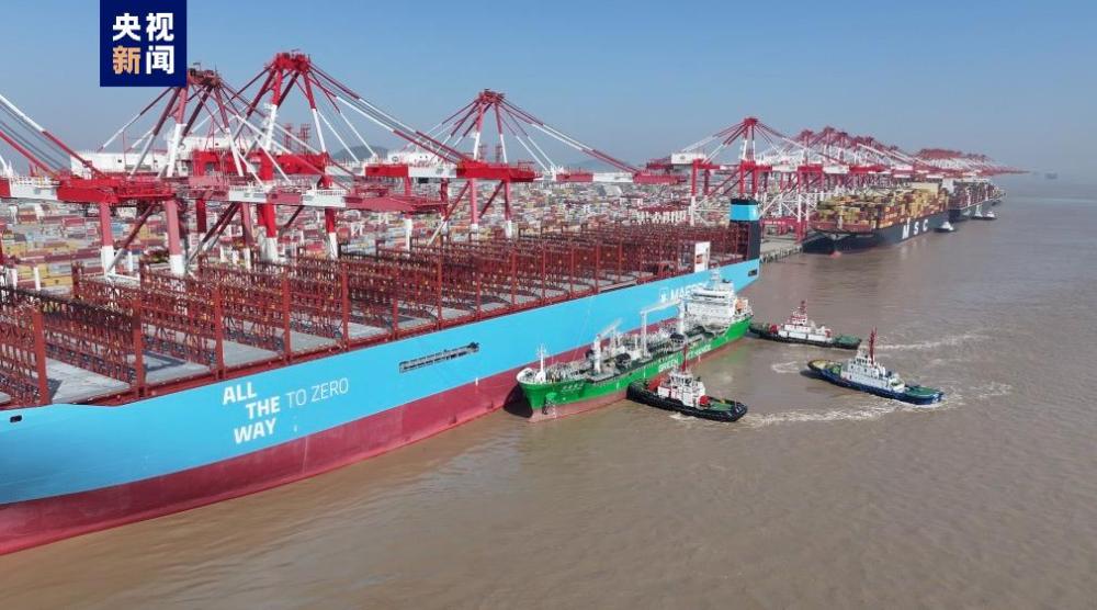 上海港完成大型集裝箱船綠色甲醇“船-船”同步加注