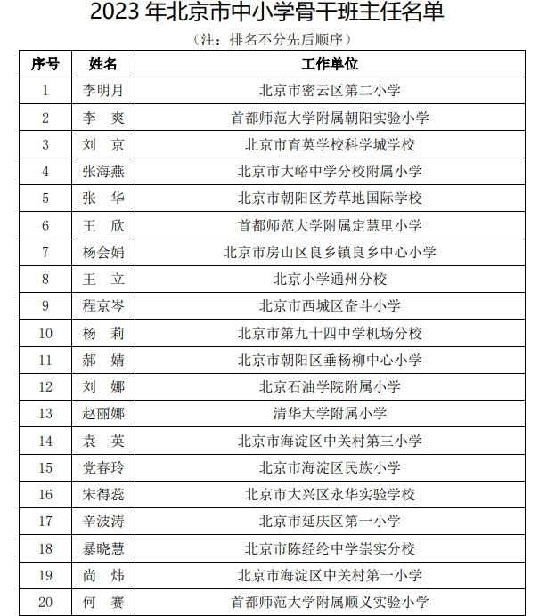 2023年北京市中小學骨幹班主任、幼兒園骨幹主班教師名單公布