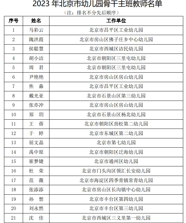 2023年北京市幼兒(er) 園骨幹班主班教師部分名單(圖源:北京市教委官方網站截圖)