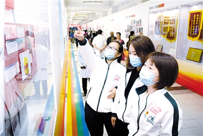 5月7日,中日友好醫院舉(ju) 辦抗擊新冠肺炎疫情工作展開幕式。抗疫工作展分為(wei) 《國有召、召必應》《應必戰,戰必勝》《英雄譜》《守土有責》4個(ge) 章節,展現醫務人員全力救治患者的英雄風采。本報記者張丹攝