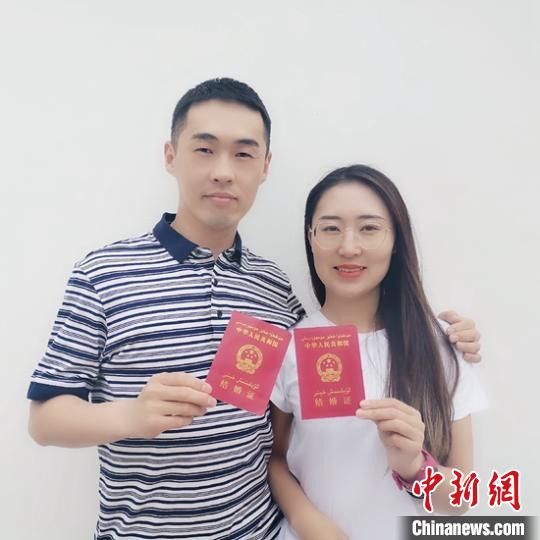 隋鑫與(yu) 劉歡在5·20當天領證登記。 王康 攝