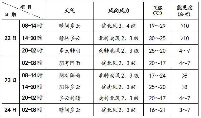 預計24-28日期間,大部分時間本市天氣為(wei) 晴到多雲(yun) 。受弱冷空氣影響,25日有3、4級偏北風。該期間氣溫較為(wei) 平穩,白天最高氣溫28~30℃,夜間最低氣溫14~16℃。