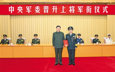 中央軍(jun) 委委員魏鳳和、李作成、苗華、張升民,以及軍(jun) 委機關(guan) 各部門、駐京大單位領導等參加晉銜儀(yi) 式。
