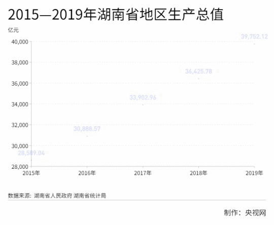 2019年,湖南地區生產(chan) 總值接近4萬(wan) 億(yi) 元,達39752.12億(yi) 元,按不變價(jia) 格計算,比上年增長7.6%,符合7.5%—8%的預期目標。