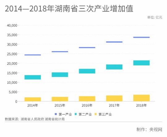 近年來,湖南從(cong) 農(nong) 業(ye) 大省走向新興(xing) 工業(ye) 大省,全省產(chan) 業(ye) 結構由典型的農(nong) 業(ye) 經濟逐步發展為(wei) 以農(nong) 業(ye) 為(wei) 基礎,第二、三產(chan) 業(ye) 共同帶動經濟發展的格局,產(chan) 業(ye) 結構實現從(cong) “一三二”到“三二一”的轉變。