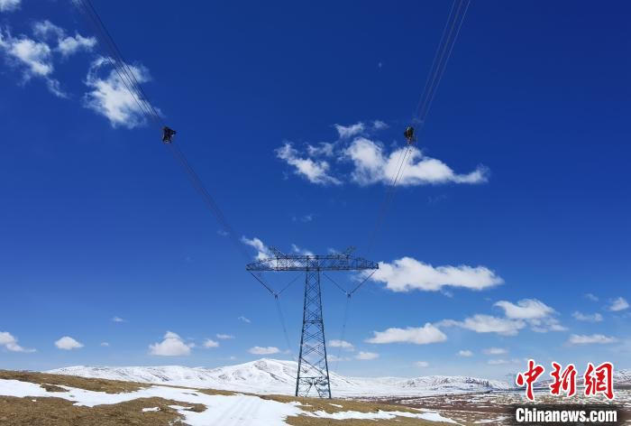 圖為(wei) 國網青海檢修公司專(zhuan) 業(ye) 人員開展青藏聯網工程柴拉直流輸電線路年度檢修工作。 謝莉蓉 攝