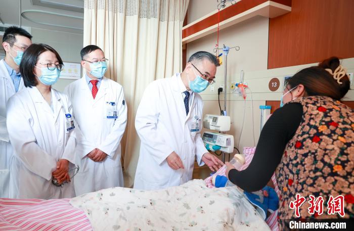 圖為王偉林等醫生在小德勒出院前查房。浙大二院供圖
